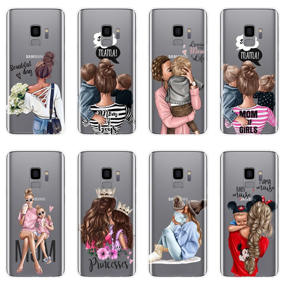 استعارات من طفل النساء أمي الغطاء الخلفي لسامسونج غالاكسي ملاحظة 4 5 8 9 لينة جراب هاتف سيليكون لسامسونج غالاكسي S8 s9 plus S5 S6 S7 حافة