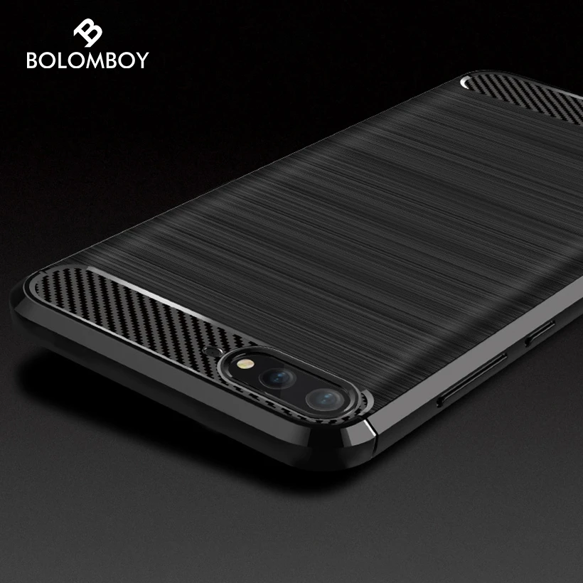 استعارات من Bolomboy ألياف الكربون حافظة لهاتف Huawei Y6 2018 حالة سيليكون لينة TPU أسود الرسم حالات لهواوي الشرف 7A غطاء 5.7 بوصة