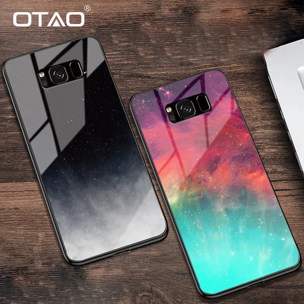 صور ل OTAO الفاخرة إطار زجاجي قوي للهاتف المحمول لسامسونج غالاكسي S8 S9 J4 J6 J8 زائد ملاحظة 8 9 A6 A7 A8 2018 حالات التدرج اللون الإسكان