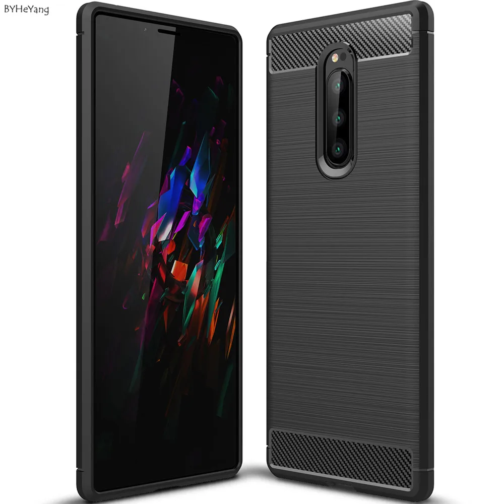 صور ل ل جراب هاتف سوني xperia 1 ألياف الكربون لينة TPU حالة لسوني xperia 1 الغطاء الخلفي كوكه قذيفة على xperia 1 الوفير ماتي كابا