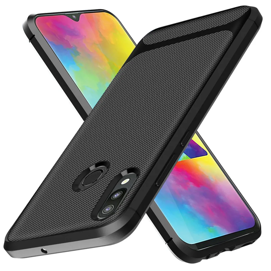 استعارات من لسامسونج غالاكسي M20 حالة ضئيلة الكربون الألياف غطاء سيليكون لسامسونج غالاكسي M10 TPU الهاتف حالات