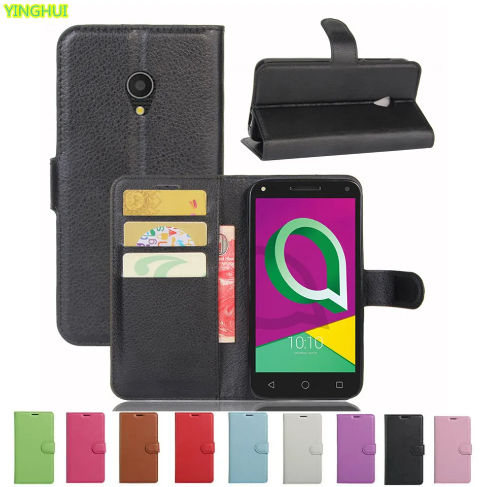 استعارات من ل الكاتيل U5 3 جرام حالة ترف PU بظهر جلدي غطاء غلاف هاتف ألكاتيل U5 3 جرام U5 4047D 4047 حالة الوجه الهاتف واقية غطاء حقيبة